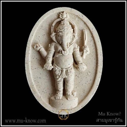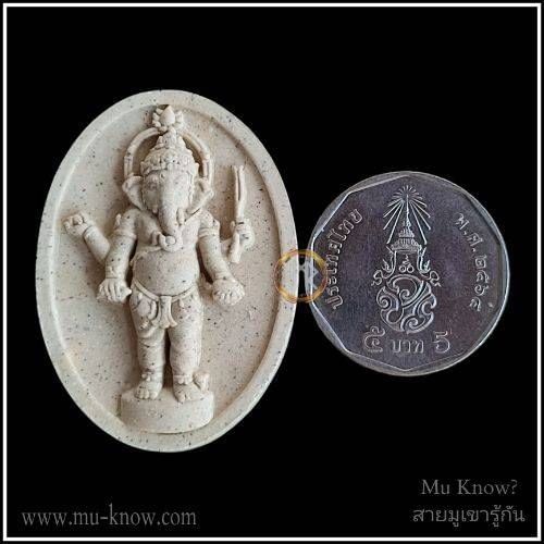 พระพิฆเนศหลังพระปฐมเจดีย์ รุ่น สำริด สำเร็จ สมปรารถนา โรยผงกระเบื้องเก่าองค์พระปฐมเจดีย์ 155 ปี สีขาว ปี 2552
